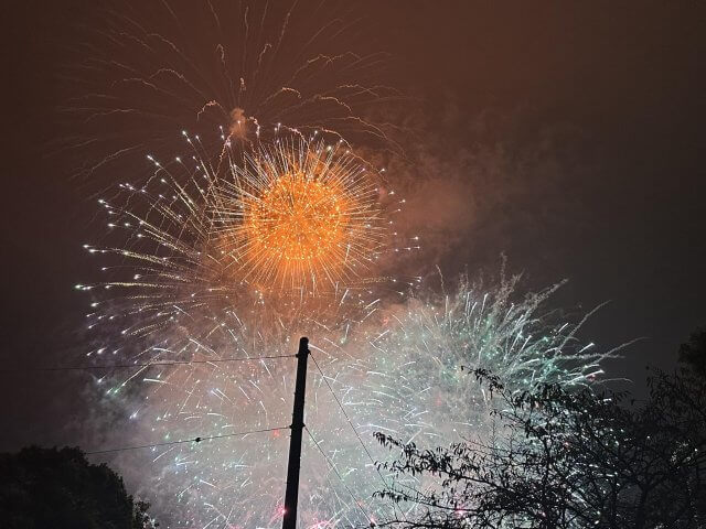 19時からは大野町「第30回根尾川花火大会」に伺い、たくさんのきれいな花火を観覧させていただきました。