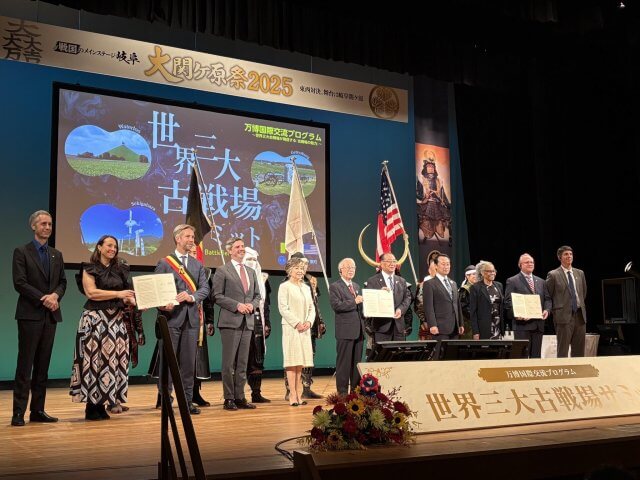 その後関ヶ原ふれあいセンターにて「世界三大古戦場サミット」出席し、それぞれの三大古戦場(日本 関ヶ原古戦場・ベルギー ワーテルロー古戦場・アメリカ ゲティスバーグ古戦場)のプレゼンテーションを拝聴しました。