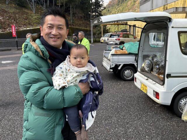 出店者のお孫さん(つむぎちゃん8ヶ月)を抱っこさせてもらい、とても可愛かったです。