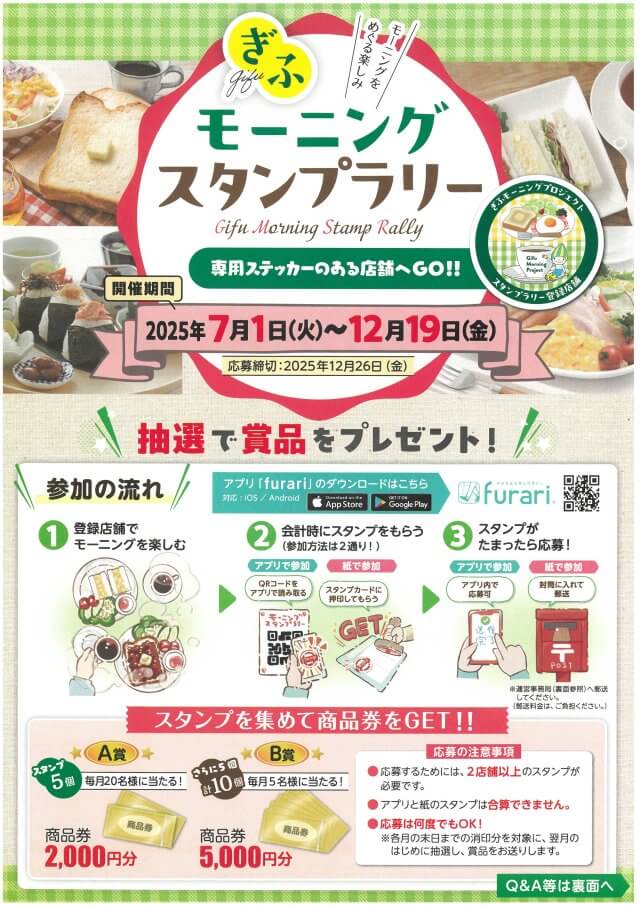 7月1日から12月19日(金)まで、「ぎふモーニングスタンプラリー」が開催されています。