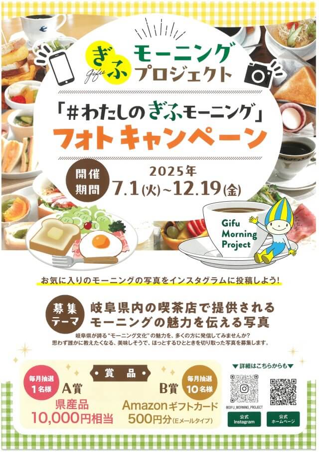 2025.09.26 「#わたしのぎふモーニング」フォトキャンペーン開催中です ぎふモーニングプロジェクト「#わたしのぎふモーニング」フォトキャンペーンが、 2025年7月1日(火)から12月19日(金)まで開催中です。